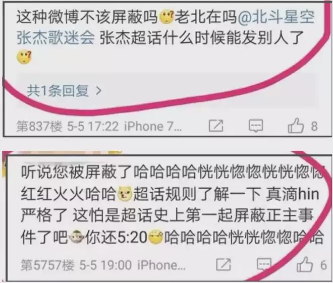 相关动态同步到了张杰超话,张杰粉丝立马开闹,要求超话屏蔽鼓励谢娜的帖子,连张杰本人发的都不行!