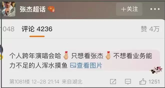 围观了一圈,发现留言粉丝用无关人士形容谢娜都算客气的了,还有人来了一句“只想看张杰,不想看业务能力不足的人浑水摸鱼”。