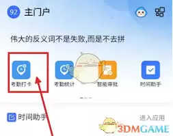 在工作模块中,请留意并找到“考勤打卡”选项。其设计通常清晰醒目,配有专属图标,方便用户快速定位。