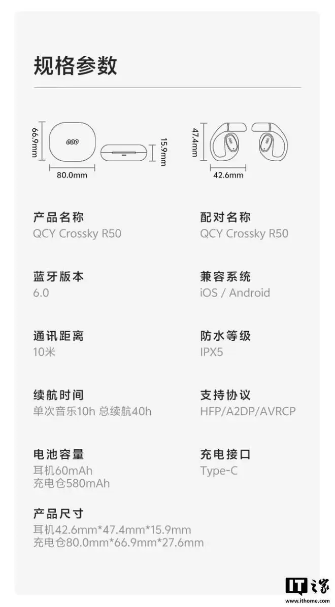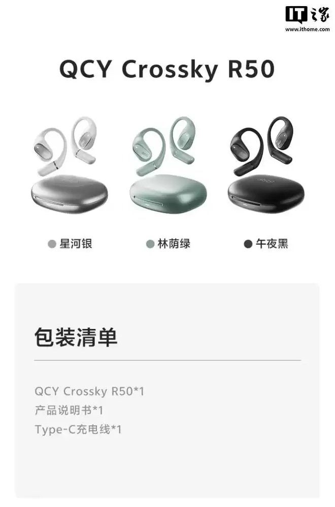 IT之家 12 月 30 日消息,QCY 现已推出 Crossky R50 蓝牙耳机,主打挂耳式设计,整体续航可达 40 小时,支持科大讯飞 AI 翻译,售价 219 元。