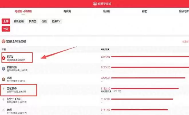不同的是,前者热度第一、剧情进展迅速、马金和王旭要落网了,后者热度第七、集数只有18集,刻意的悬浮。