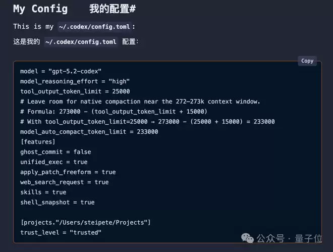 在这里,Peter还给出了自己的配置。