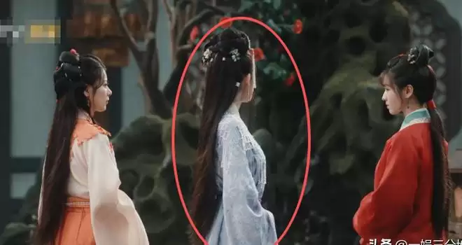 侧面镜头的情况下,古力娜扎更是比旁边两个女演员瘦多了。