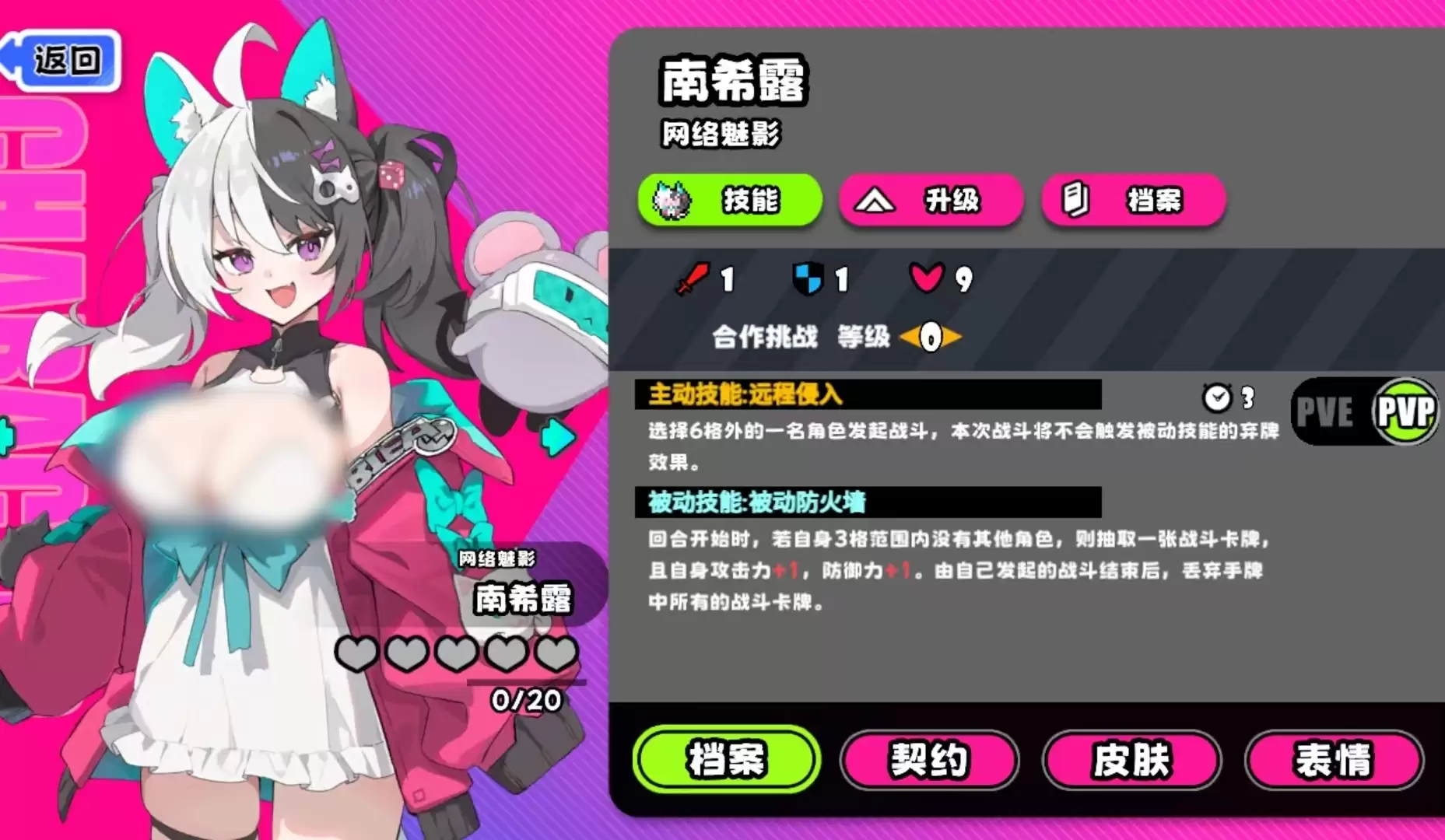 而在PVP形式的标准模式里,南希露的主动技将变更为只能向六格外的角色发动战斗,被动技的抽牌机制不变,自身所能获得的属性变更为攻击+1和防御+1。且除了由主动技进入的战斗外,其它形式的战斗也都需要弃张战术手牌,并且是全部弃完。同时,当南希露的等级得到提升时,会给予她很多额外的攻击力,令她的作战能力变得更强,所以很值得花费资源去提升。