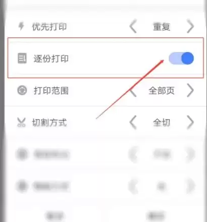 在设置菜单中,您就能看到并开启“逐份打印”功能按钮了。