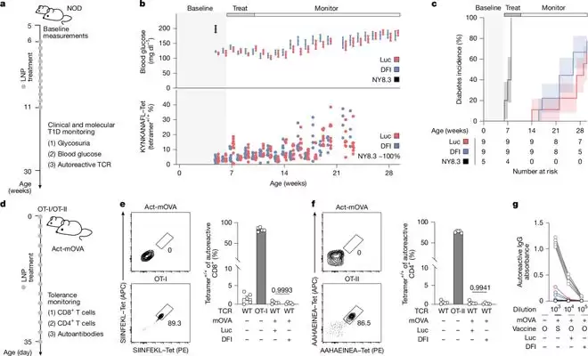 同时,研究团队使用了包括易患 1 型糖尿病、多发性硬化症等自身免疫疾病的经典小鼠模型来评估 DFI 治疗的潜在风险。