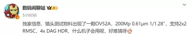 根据博主透露的信息,一颗型号为OV52A的传感器大概率将搭载于OPPO Find X9 Ultra之上,并且参数也很清晰。