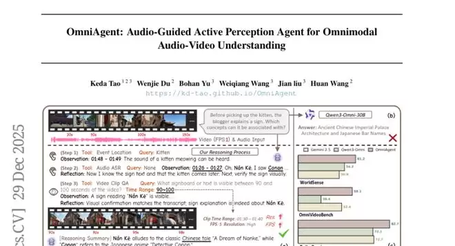 西湖大学携蚂蚁集团OmniAgent:AI视频理解实现视听融合