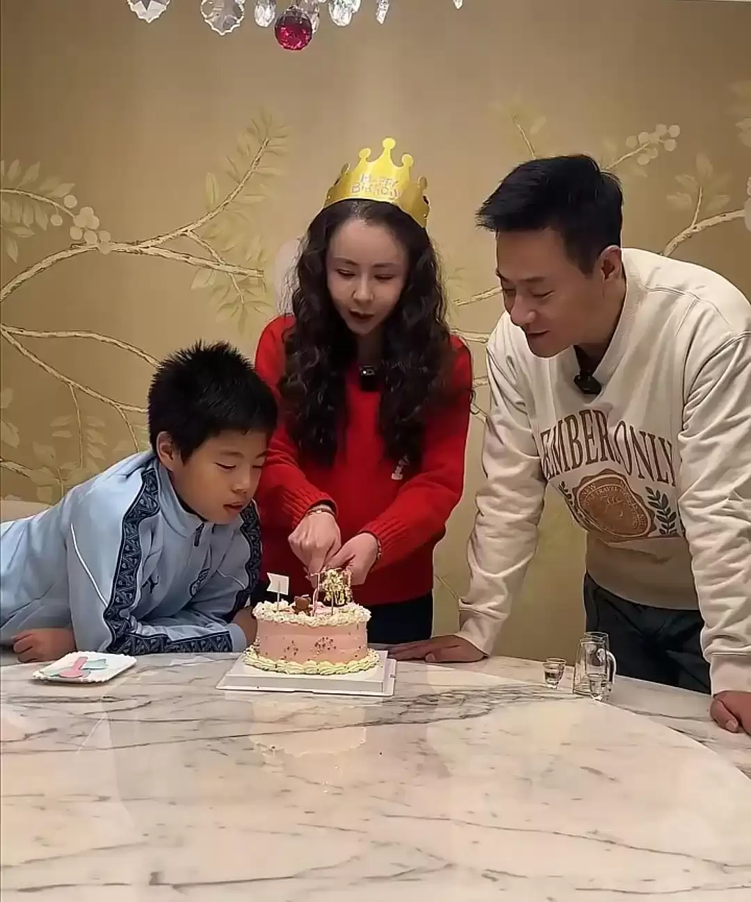 回家推门瞬间更见默契:连奕名先沉声喊“生日快乐”,大福立马捧着蛋糕蹦出来,闪光灯下父子俩嘴角的得意藏都藏不住。