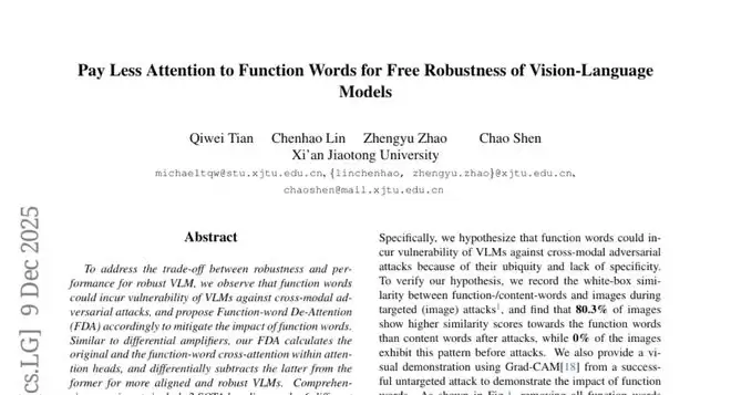西安交大视觉语言模型实现鲁棒性提升,功能词忽视技术获突破