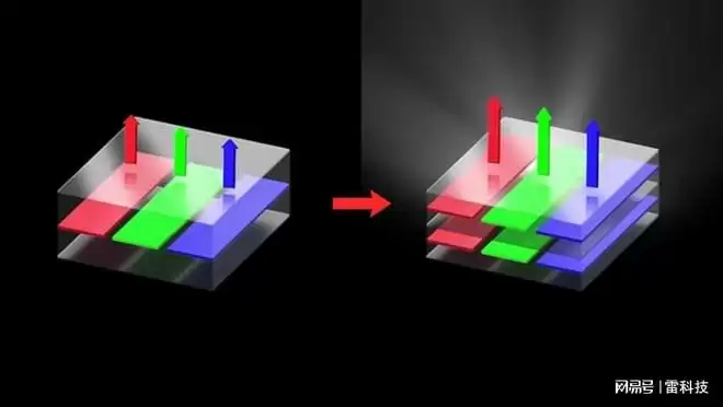 双层 OLED(即 Tandem 双栈串联 OLED)正是在这个「不可能三角」中撕开了一条缝。通俗点讲,从传统单层 OLED 到 Tandem 双栈串联的结构变化,就像从「一个人提水」变成了「两个人一起抬」,同样的电流不再只驱动一层发光,而是上下两层一起亮。