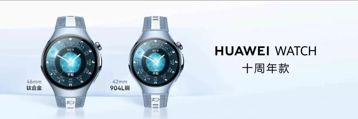 值此WATCH系列诞生十周年之际,华为推出了承载十年技术积淀的纪念款产品。这款旗舰新品不仅完整继承了WATCH 5的顶级配置,更通过创新功能重新定义了腕上智能设备的标准。它的设计语言充满情怀与质感:星瀚蓝与极地白的经典配色,表冠上镌刻的“10 YEARS”专属标识,以及采用904L不锈钢与钛合金表壳搭配蓝宝石玻璃镜面的高端组合,既是对初代产品的致敬,也展现了十年来的技术进化。其推出的46mm与42mm双尺寸设计,打破了传统性别的佩戴界限,让不同手腕粗细的用户都能获得舒适的佩戴体验。