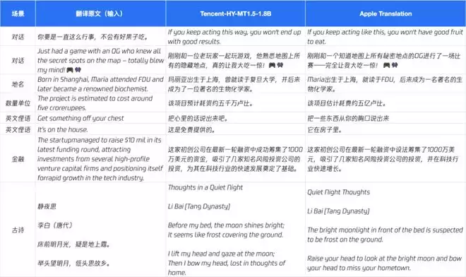▲与苹果自带翻译对比(来源:腾讯混元)