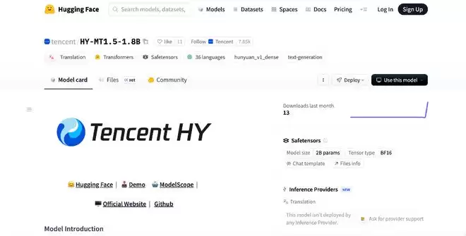 ▲Tencent-HY-MT1.5-1.8B开源(来源:Hugging Face)