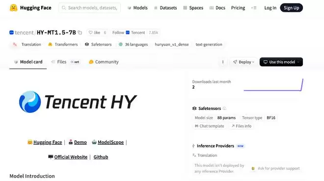 ▲Tencent-HY-MT1.5-7B开源(来源:Hugging Face)