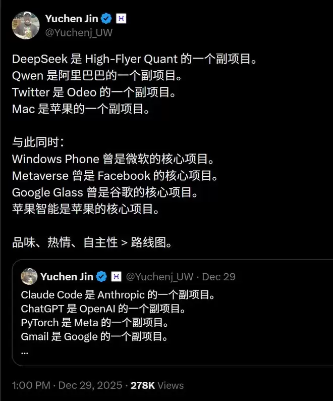 【新智元导读】你知道吗,DeepSeekTwitter、Mac、Qwen,最初都只是副项目?真正改变世界的产品,可能根本不在公司的PPT路线图上。