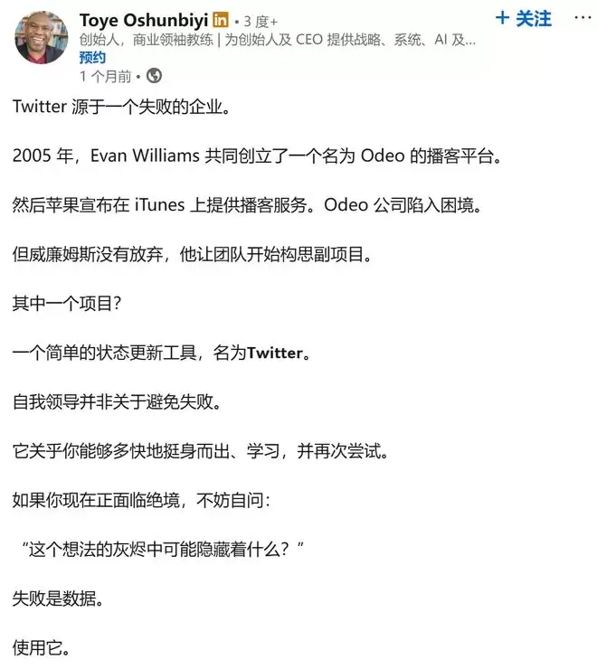 最终,Odeo没救活,但Twitter改变了全球的信息传播方式,改变了数亿人的生活方式。