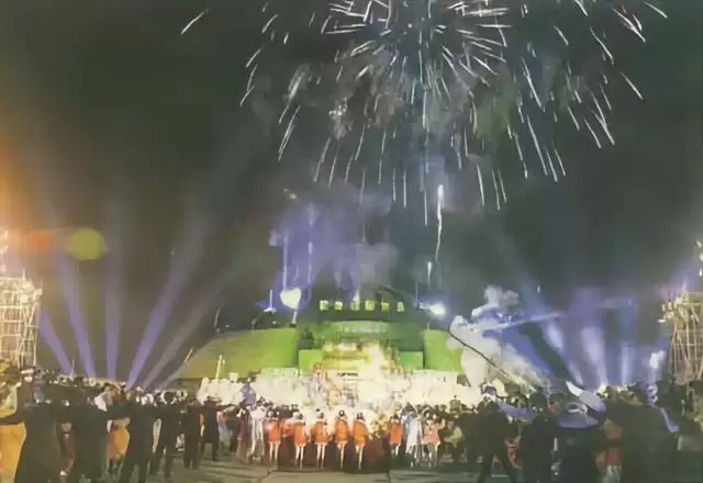 2001年1月1日零时,随着新世纪钟声的响起,北京中华世纪坛礼花齐放,万民欢腾。