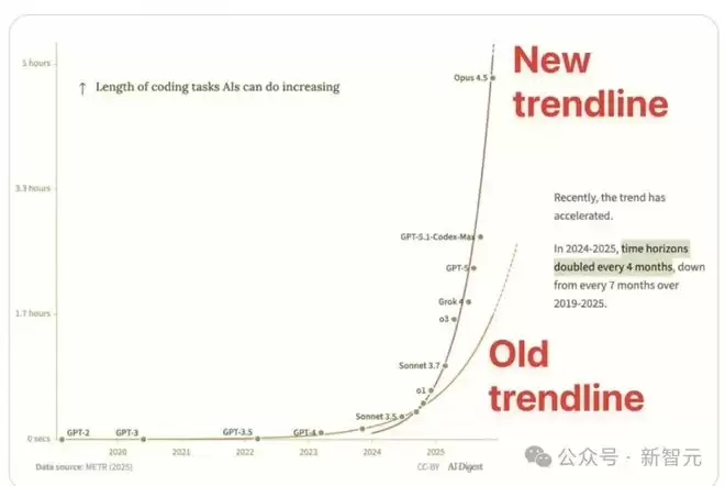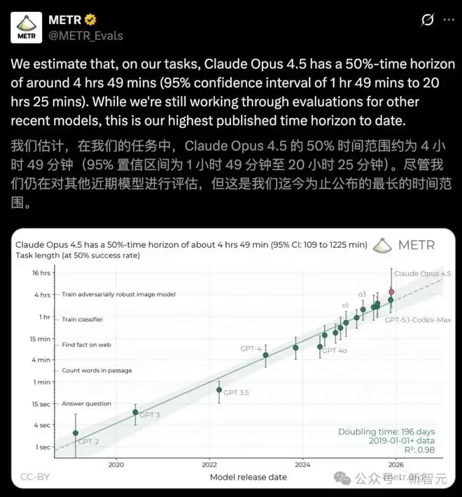 在METR最新公布报告称,Claude Opus 4.5已能够持续自主编码「长达5小时不崩」。就连OpenAI最强编程模型——GPT-5.1-Codex-Max也甘拜下风。