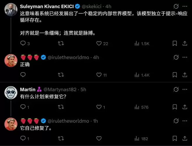 或许,AI系统已经发展出了一个稳定的内部世界模型,独立于人类看到的prompt-响应而存在。