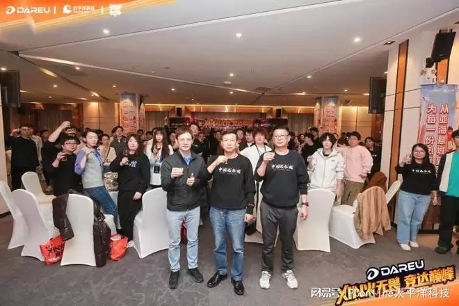 当晚最温馨的时刻莫过于举杯同庆环节。在达尔优母公司东莞市铭冠电子科技有限公司董事长李晨曦先生与太平洋科技副总裁李杰先生等领导的带领下,全场嘉宾共同举起酒杯,齐声高呼“炫酷电竞达尔优,加油加油加油!”的口号,将家宴气氛推向高潮。