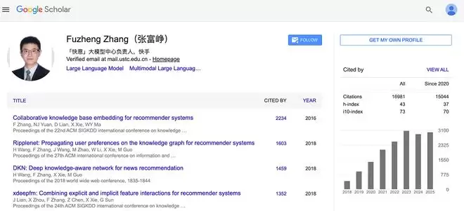 ▲张富峥的谷歌学术主页(图源:Google Scholar)
