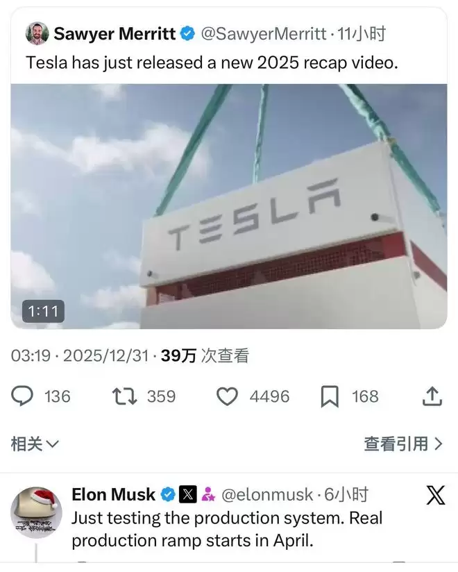 此外,马斯克还在X平台上回应网友时透露,特斯拉已经开始测试Cybercab的生产系统,这款车型的量产工作预计将于今年4月正式启动。