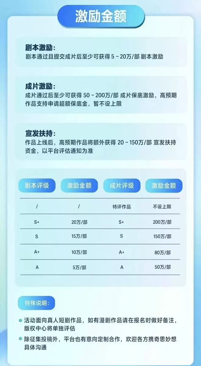 同时,抖音集团短剧版权中心也出台一系列激励政策,鼓励更多优质创作。今年10月,其发布的万象短剧计划第二期针对古典名著和传奇人物主题展开激励,鼓励创作者从历史文化中吸取灵感,剧本激励金额高达5-20万/每部,成片激励最低50万/每部,上不封顶,足见决心之大。
