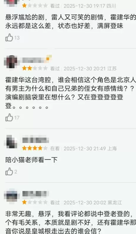 最让观众出戏的,就是霍建华的台词,根本没有北京腔的意思。