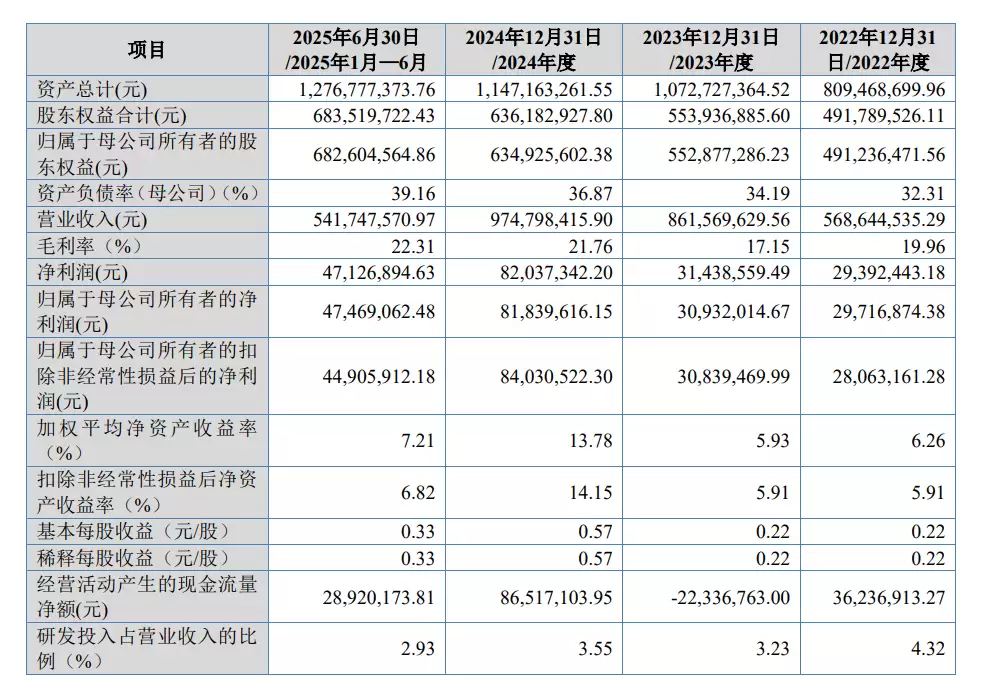 报告期内(2024年至2025年上半年),富士智能的营业收入分别为5.69亿元、8.62亿元、9.75亿元及5.42亿元;净利润则分别为2939.24万元、3143.86万元、8203.73万元及4712.69万元。