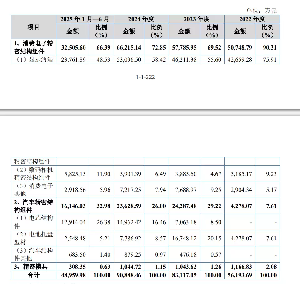 富士智能主营业务涵盖消费电子精密结构组件、汽车精密结构组件的研发、生产及销售。其主要产品包括消费电子精密结构组件、汽车精密结构组件以及精密模具。其中,消费电子精密结构组件主要包括显示终端结构组件(主要应用于智能电视、教育/办公显示、电竞显示、车载显示等)、数码相机结构组件以及其他精密结构组件,如录音笔/词典笔、教育平板等;汽车精密结构组件则主要包括电芯结构件、电池托盘型材、车载摄像头结构件、IGBT散热基板等。这些精密结构组件兼具结构保护、外观装饰、产品支撑及安全防护等功能。