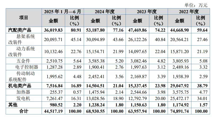 国贵科技长期深耕汽车后市场,近二十年来专注于高性能汽车零部件的研发、生产与销售。其主要产品线涵盖两大板块:一是以汽车机械悬架、空气悬架为代表的汽车悬架系统零部件;二是以涡轮增压器、连杆等为代表的汽车动力系统零部件。此外,公司业务已拓展至汽车周边的机电类相关产品。