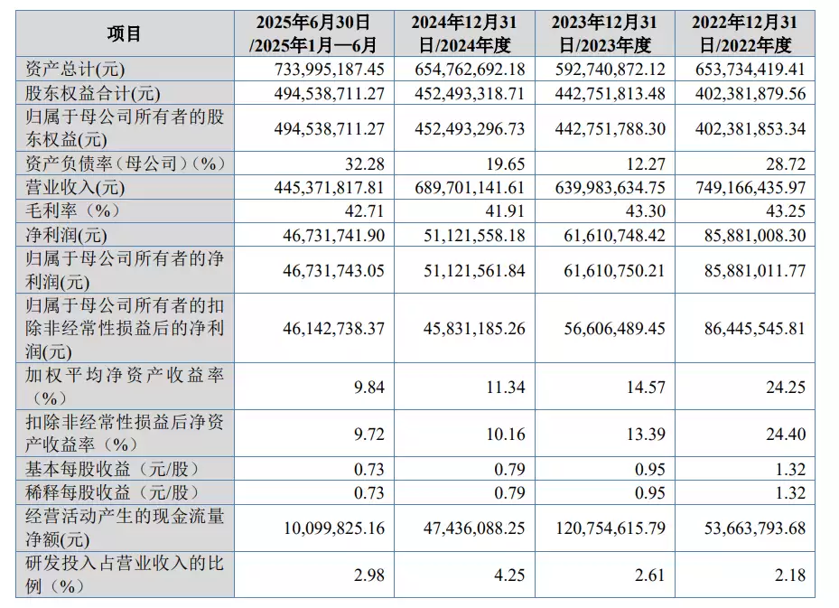 报告期内(2024年至2025年上半年),国贵科技的营业收入分别为7.49亿元、6.4亿元、6.9亿元与4.45亿元;对应净利润分别为8588.1万元、6161.07万元、5112.16万元和4673.17万元。