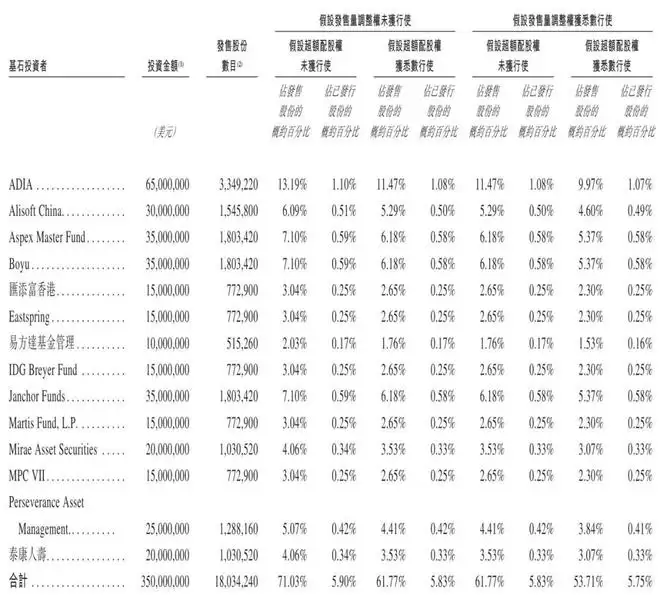 阿布扎比旗下ADIA认购6500万美元,阿里旗下Alisoft China认购3000万美元,Aspex Master Fund、Boyu(博裕资本)分别认购3500万美元,汇添富香港、Prudential旗下Eastspring分别认购1500万美元,易方达基金管理认购1000万美元;
