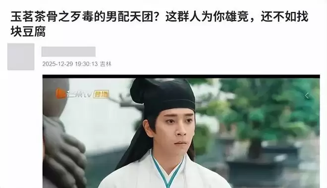 不仅如此,剧中的男配的颜值也被观众吐槽,也有网友锐评他们是“歹毒的男配天团”,直言:这群人为你雄竞,还不如找块豆腐。