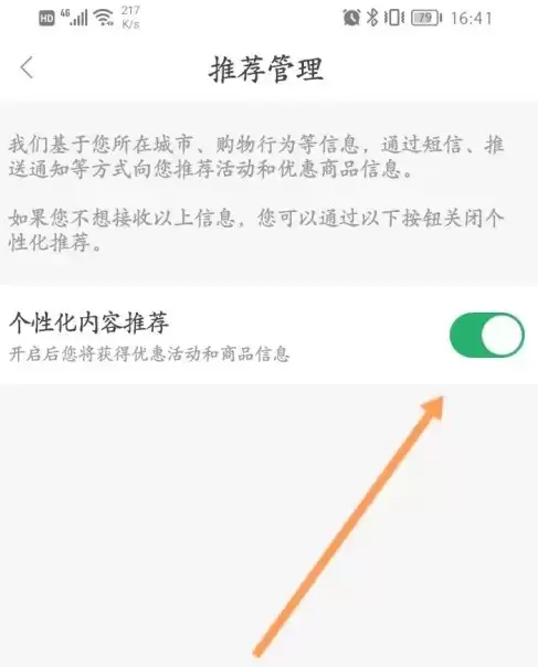 最后,找到“个性化内容推荐”功能,点击将其关闭即可。