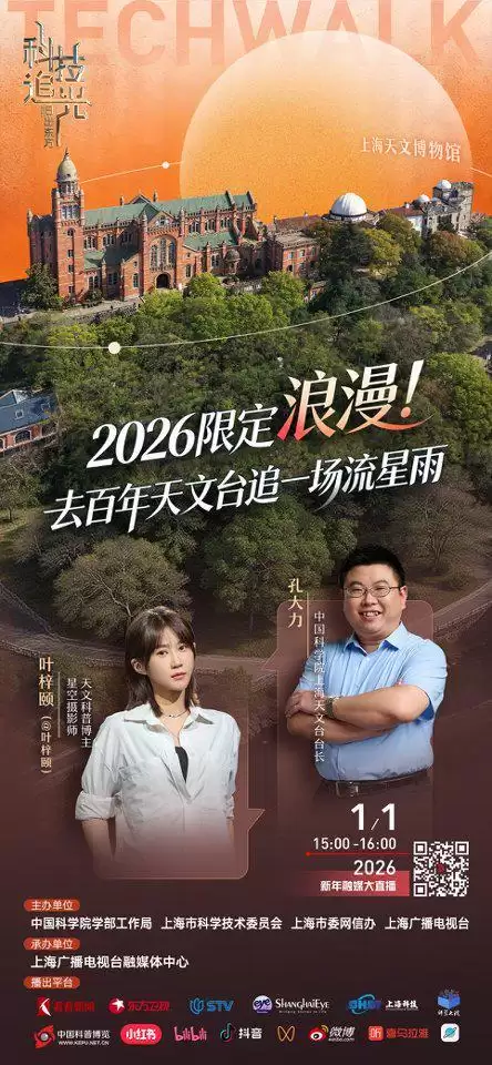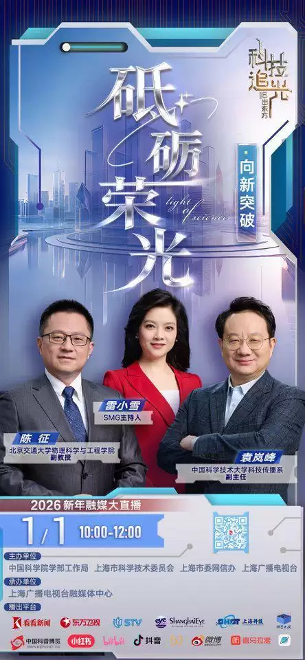 新一年之初的元旦,由中国科学院学部工作局、上海市科学技术委员会、上海市委网信办、上海广播电视台联合主办的《日出东方 科技追光》2026新年融媒大直播,将以“向新而行”为主题,于1月1日6时至16时,进行一场长达十小时的沉浸式、全景化、跨时空融媒盛宴。