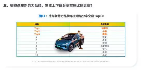 造车新势力品牌车主上下班分享空座前五:特斯拉、小鹏、零跑、蔚来和极氪