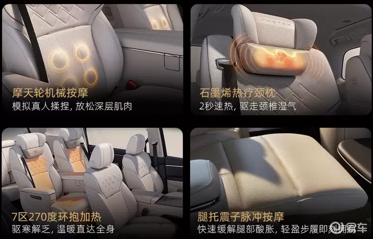 内饰空间全面升级智能座舱系统,全系标配基于鸿蒙OS开发的交互界面,支持触控、语音、手势三模交互方式。核心配置包含车载冰箱、YAMAHA环绕音响系统、第二排双零重力座椅及第三排电动调节功能。中高配车型进一步配备17.3英寸后排娱乐屏,并可选装华为乾崑智能驾驶辅助系统,实现L2+级自动驾驶能力。车机系统支持多屏联动、车家互联及智能钥匙管理,提供手机App、NFC卡片、实体钥匙三种解锁方式,并具备远程授权用车功能。