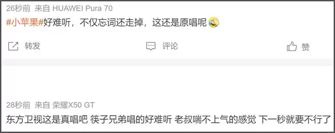 东方卫视筷子兄弟带着小孩子们唱《小苹果》翻车,谁能想到《小苹果》还能唱不好呢?不仅忘词还走调,场子没热起来,反倒让观众感到“上不来气”。