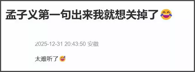 孟子义更是出场就被吐槽唱得难听,修音都修成电音了,都没拯救跑调,纯靠热度在撑场子。唱歌的时候话筒差点怼到鼻子上,这是生怕被别人发现自己对口型假唱吗?