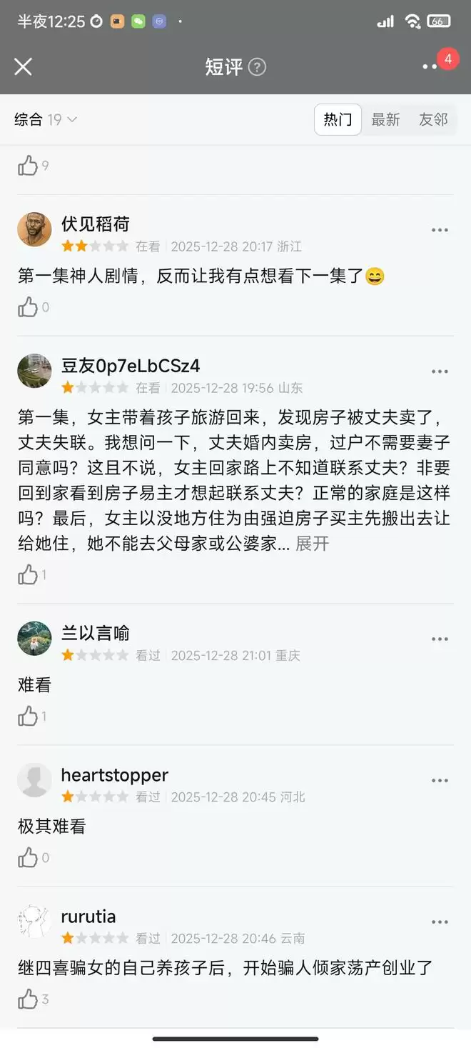 首播口碑也出来了,观众评价一针见血,纷纷说太假了!卖房子这个事就引发了巨大的争议,夫妻一方就能卖房子?卖房子这么大的事情不和家里人说?卖了房子一家住哪里,还有孩子,还一声不响玩失踪。故意制造不合情理的剧情,都当观众是傻子吧。