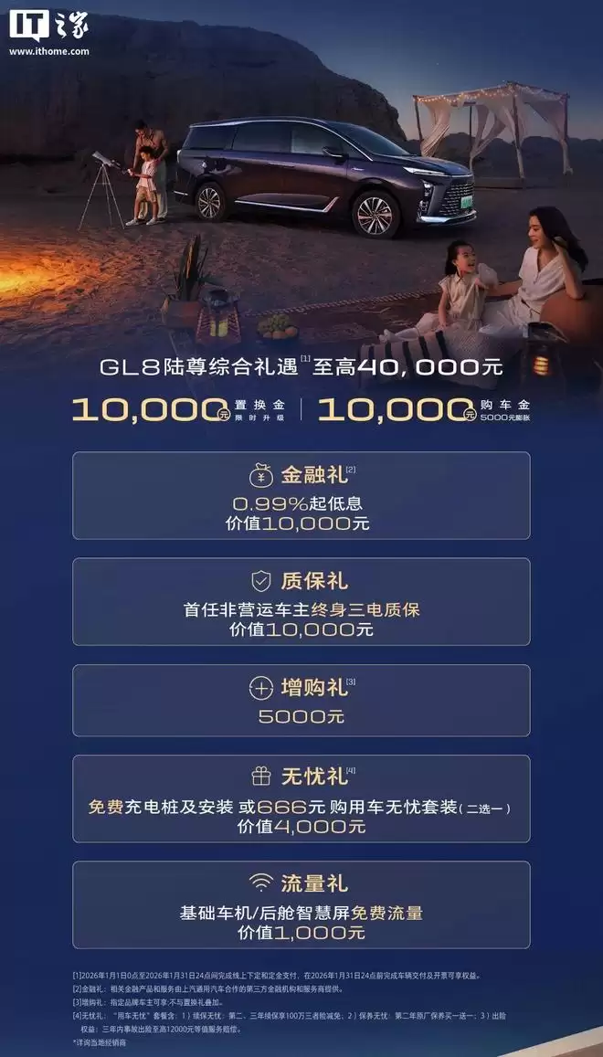 与此同时,别克还顺势推出了针对新能源MPV的一月限时购车权益: