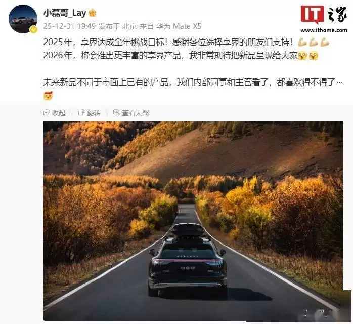 华为智选车产品总监(享界系列)彭磊近日在社交平台发文,正式向外界宣布,享界品牌已在2025年成功达成全年挑战目标,并透露将于2026年推出更多元化的产品矩阵。这一消息在业内引发了广泛关注,标志着享界在高价位新能源汽车市场的战略布局已迈入全新阶段。