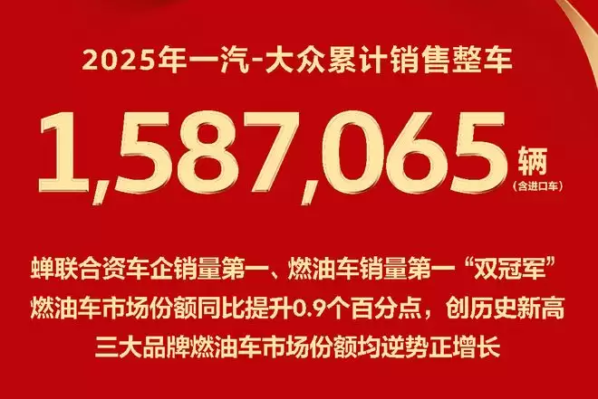 一汽-大众2025年销量超158万辆 燃油车占比创新高