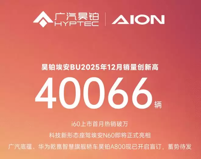 与此同时,产品迭代将持续加速。2026年1月,埃安将推出基于用户深度反馈打造的全新“国民好车”科技新形态座驾——埃安N60,进一步丰富家庭用户多元化选择。同期,凝聚广汽底蕴与华为乾崕智慧的旗舰轿车——“精英座驾”昊铂A800也将启动预售。该车型集最新科技于一身,将以更前瞻的智能化体验进军高端市场,与埃安形成梯度互补、协同提升的品牌格局。