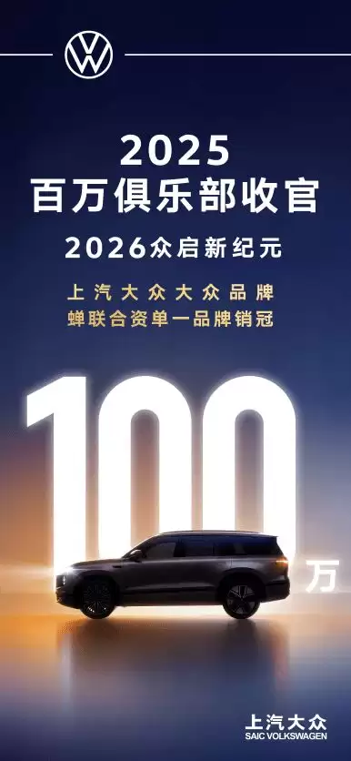 2025年刚刚翻开新篇,上汽大众就在1月1日带来了好消息:全年终端销量成功突破106万辆,稳稳站上了百万辆的年销规模新台阶。尤其值得关注的是,12月单月终端销售9.6万辆,环比上月增长超过10%,为全年成绩单画上了一个强劲的句号。
