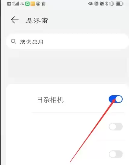 最后,在应用列表中找到“日杂相机”,你也可以直接使用顶部的搜索功能快速查找。找到应用后,点击其右侧的开关按钮,打开权限即可成功启用悬浮窗。