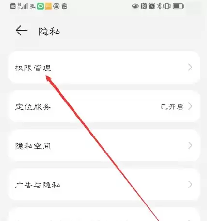 进入隐私设置后,请点击第一个菜单项——【权限管理】。