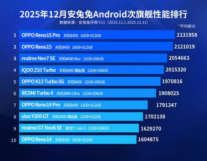 当安兔兔2025年12月的安卓性能榜单揭晓,两组数字背后,揭示的不仅是跑分的差距,更是高通与联发科在顶级赛道与次旗舰赛道截然不同的布局逻辑与市场现实。